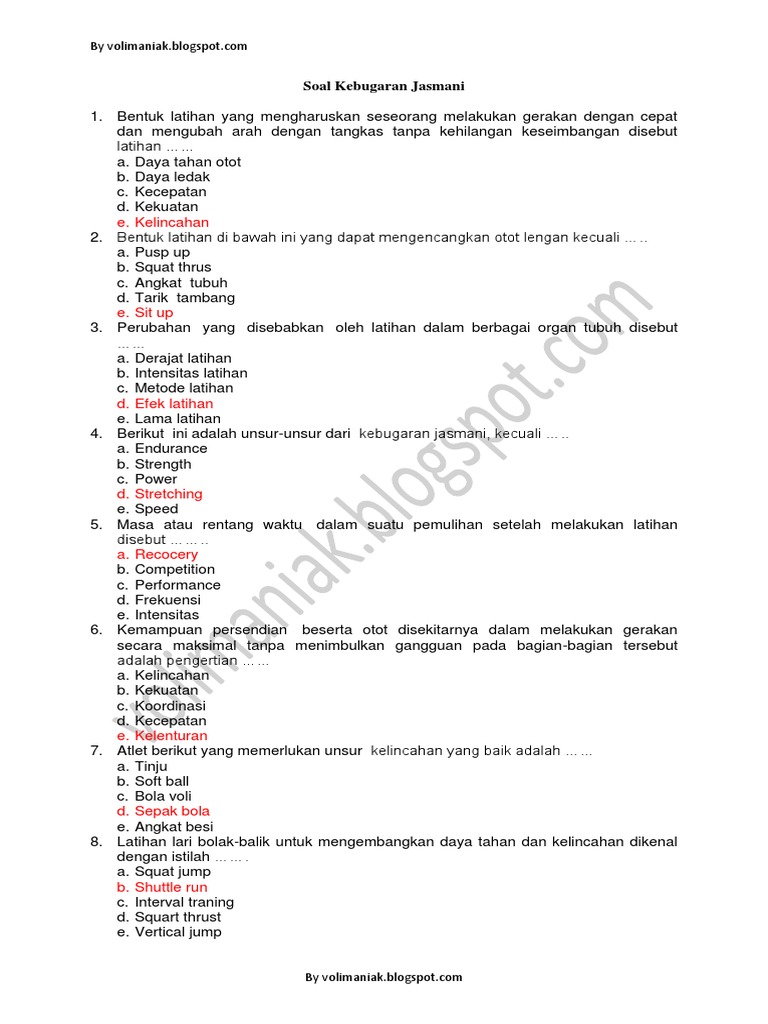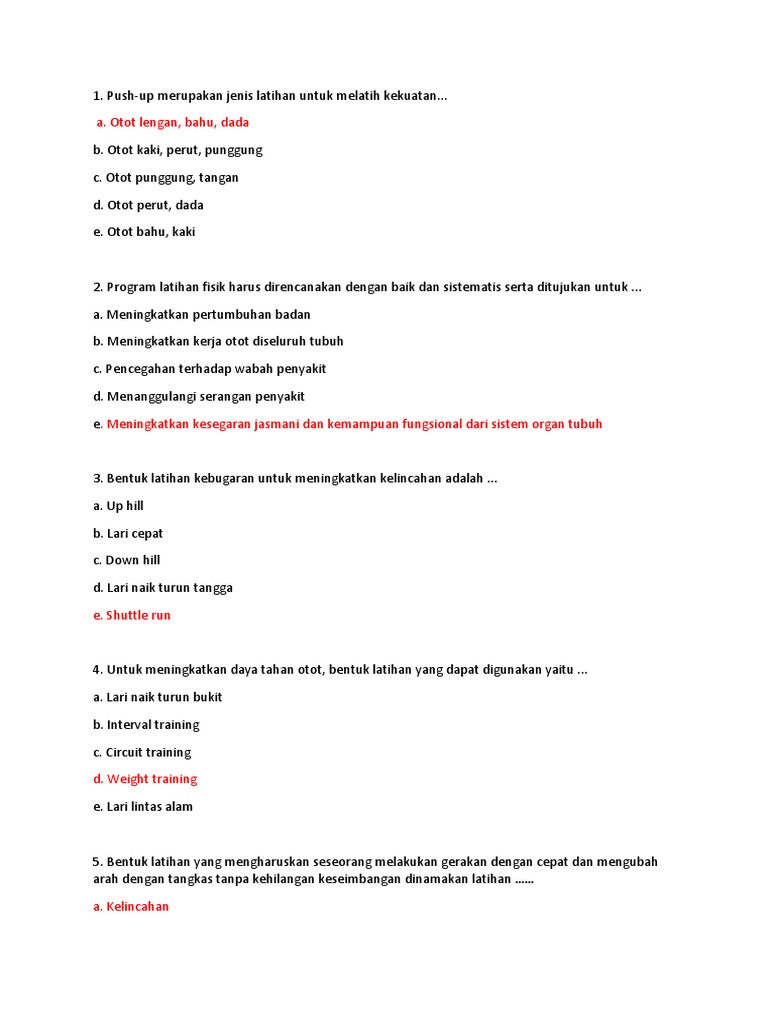 Bentuk latihan yang mengharuskan seseorang melakukan gerakan dengan cepat dan mengubah arah dengan tangkas tanpa kehilangan keseimbangan disebut latihan. Baca dan cermati soal baik-baik lalu pilih salah satu jawaban yang kamu anggap benar dengan mengklik tap pilihan yang tersedia. LATIHAN SOAL UAS III.