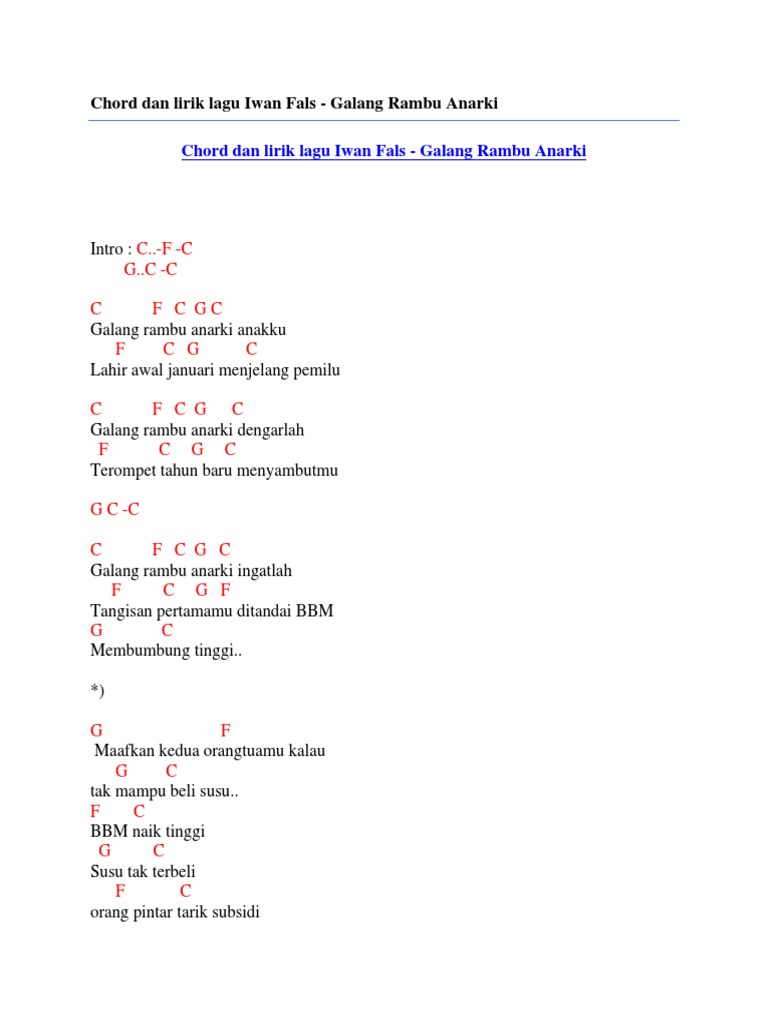 Chord Dan Lirik Lagu Iwan Fals Galang Rambu Anarki