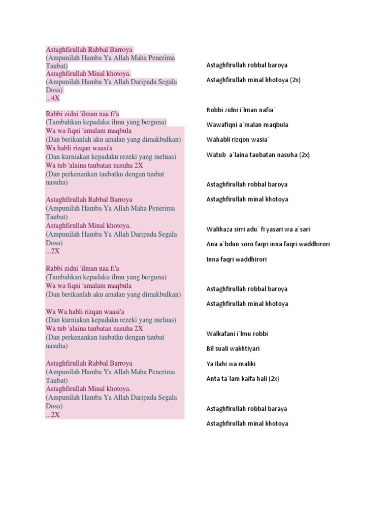 Astaghfirullah Rabbal Barroya Pdf